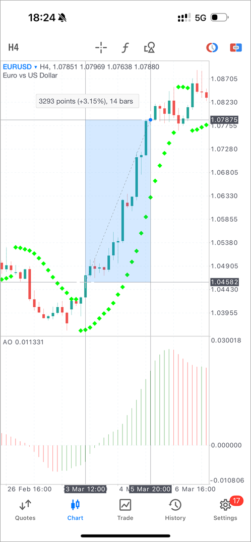 MetaTrader 5 iOS 移动应用程序的最新版本引入了一系列便捷的图表功能,并进行了重要的稳定性改进,以获得更流畅的用户体验。