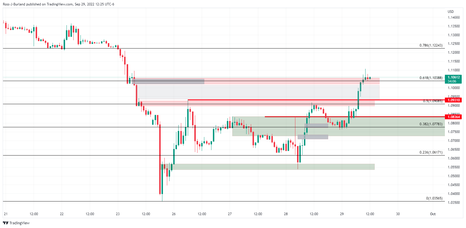 过去几天裡,英镑/美元已经大幅回升,周四触及高位1.1108,处在61.8%斐波位附近。