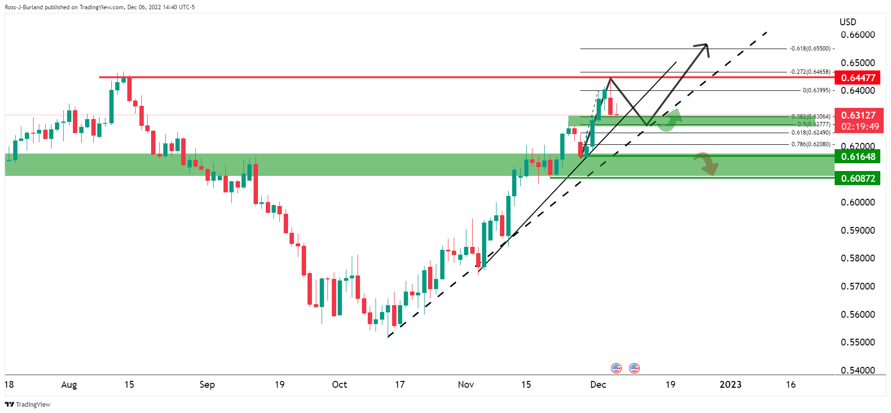 如果多头在这个关键水平走强,汇价有望再度遇阻,看涨周期𫔭始减速,汇价将测试0.6400附近。