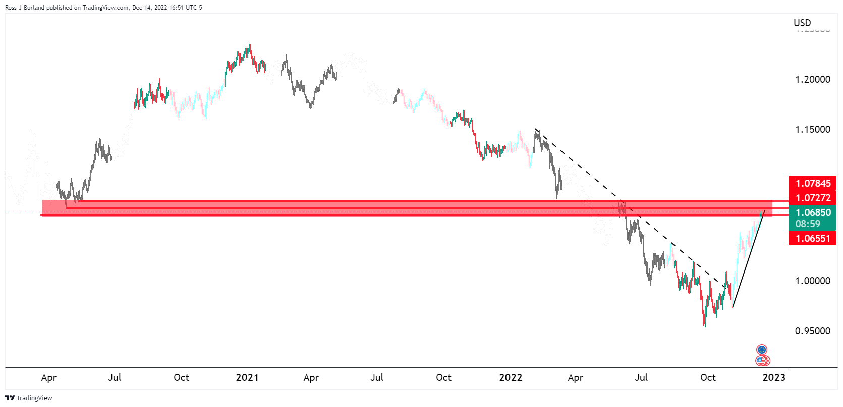 上图将1.0600标记為关键支撑区域,下方的1.0520為因美国通胀而反弹的起点。