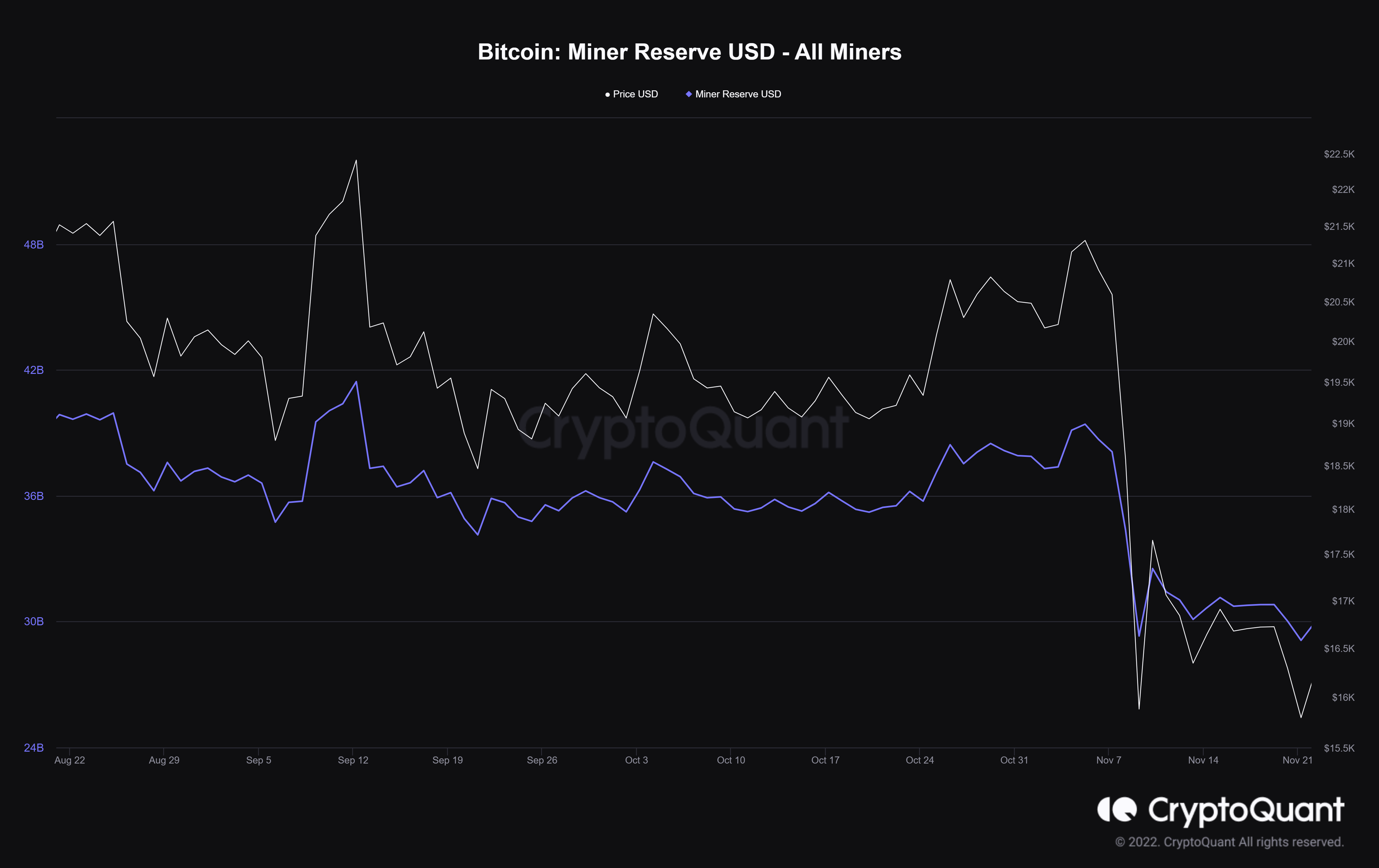 矿商储备指标提供了对这些参与者所持有的比特币数量的估计,目前它在184万个比特币左右徘徊,价值大约為300亿美元。因此,如果矿商面临的困境继续下去,可能会导致更多的抛售压力,导致比特币价格下跌。