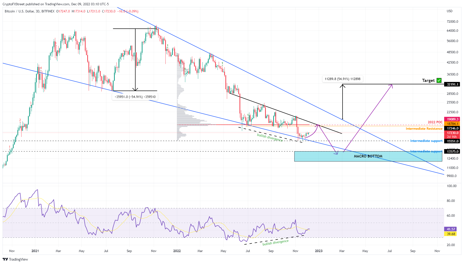 - 比特币价格可能跌至9550美元并形成一个宏观底部后到2023年下半年升至3万美元