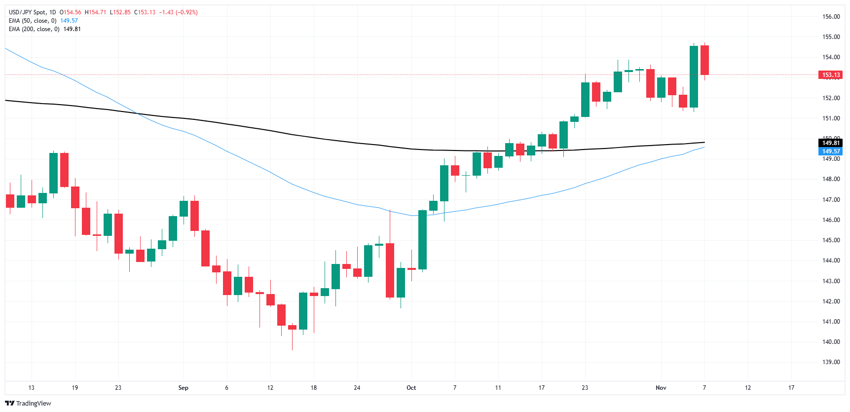 - 美联储在 11 月利率决议总体符合市场预期,美元/日元徘徊在 153.20 附近。
