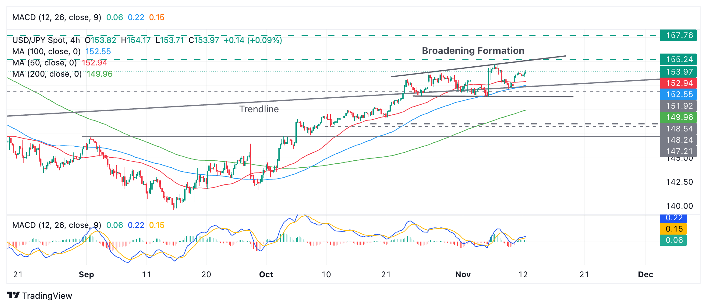 - 美元/日元可能正在形成看跌的 "扩大形态"(Broadening Formation)价格形态。