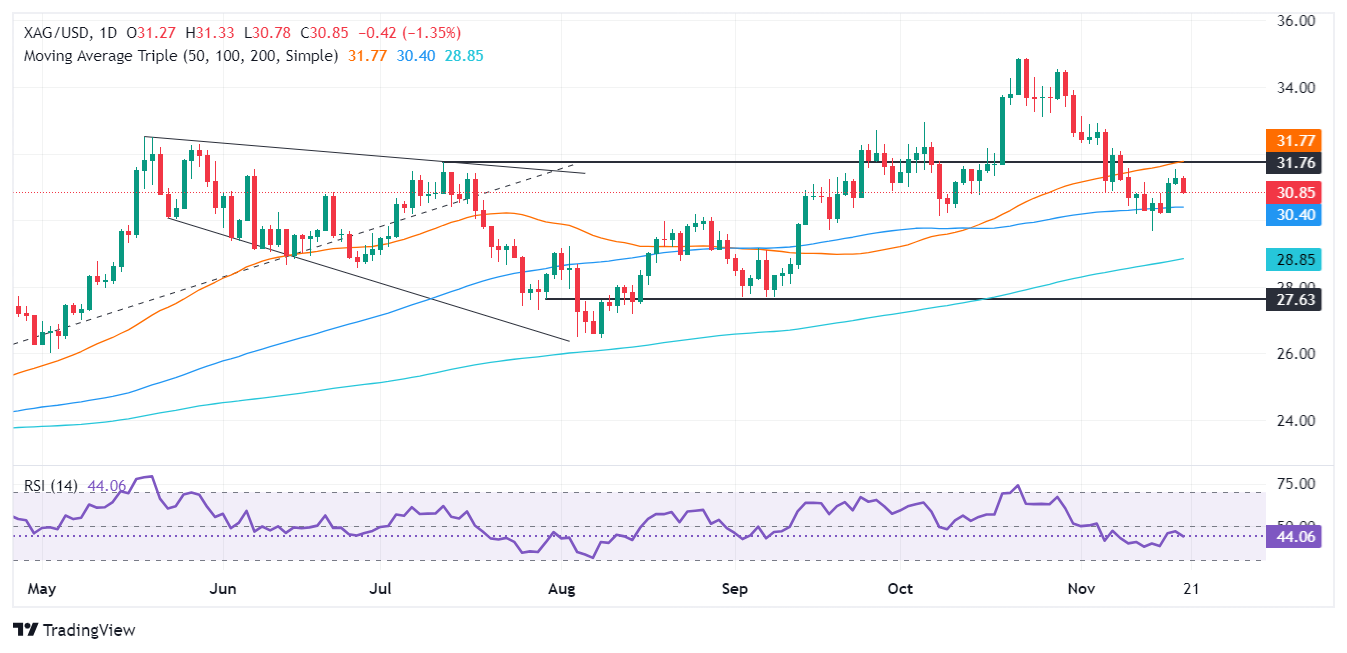 如果𧹒家进场并将银价推高至 31.00 美元上方,下壹个阻力位将是 50 SMA,然后是 32.00 美元。