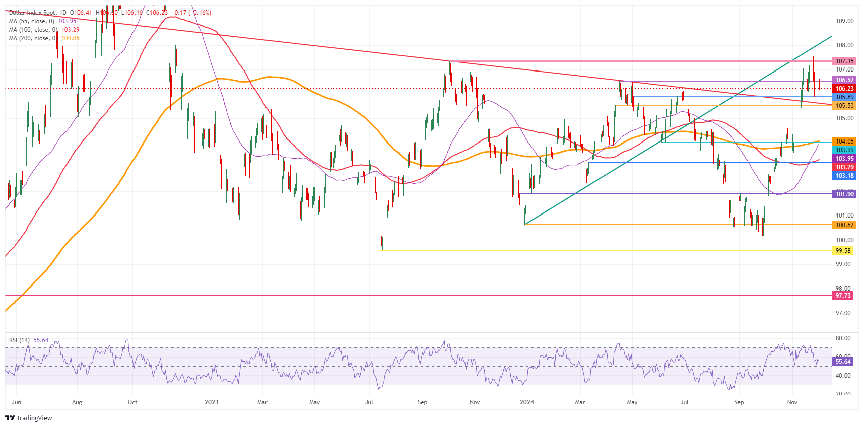- 美元指数回落至 106.00 下方,未能守住 106.50 以上的涨幅。