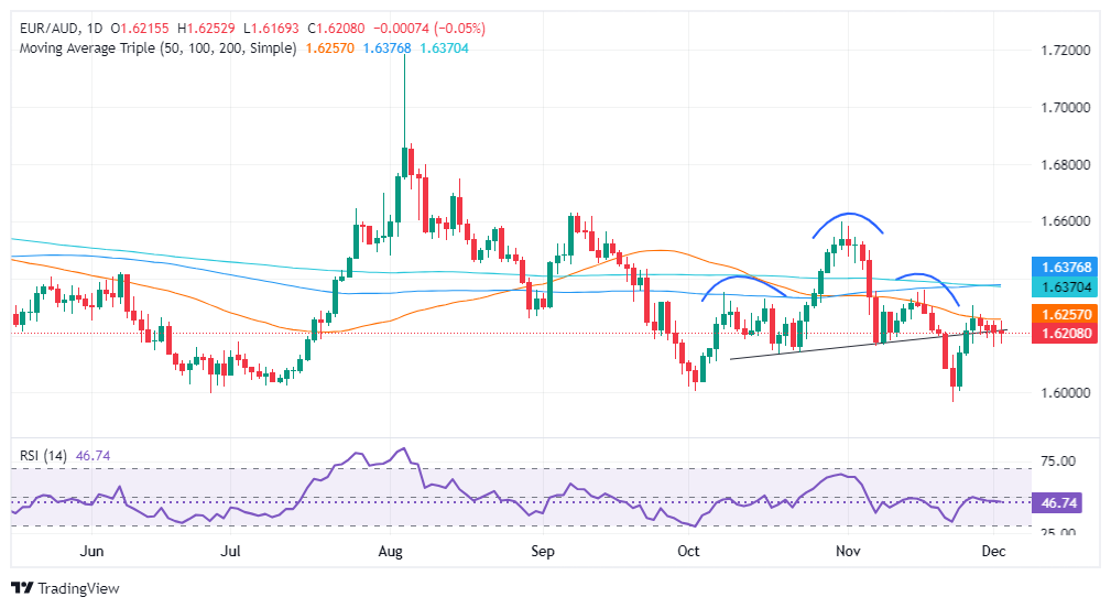 欧元/澳元震盪于 1.6200 附近,即便走出一系列更低的高点和更低的低点,构成持续下跌趋势的迹象。