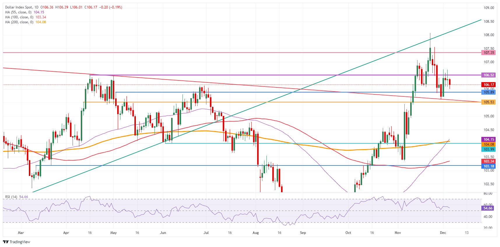 - 美元指数(DXY)未能收于关键的 106.50 水平之上。
