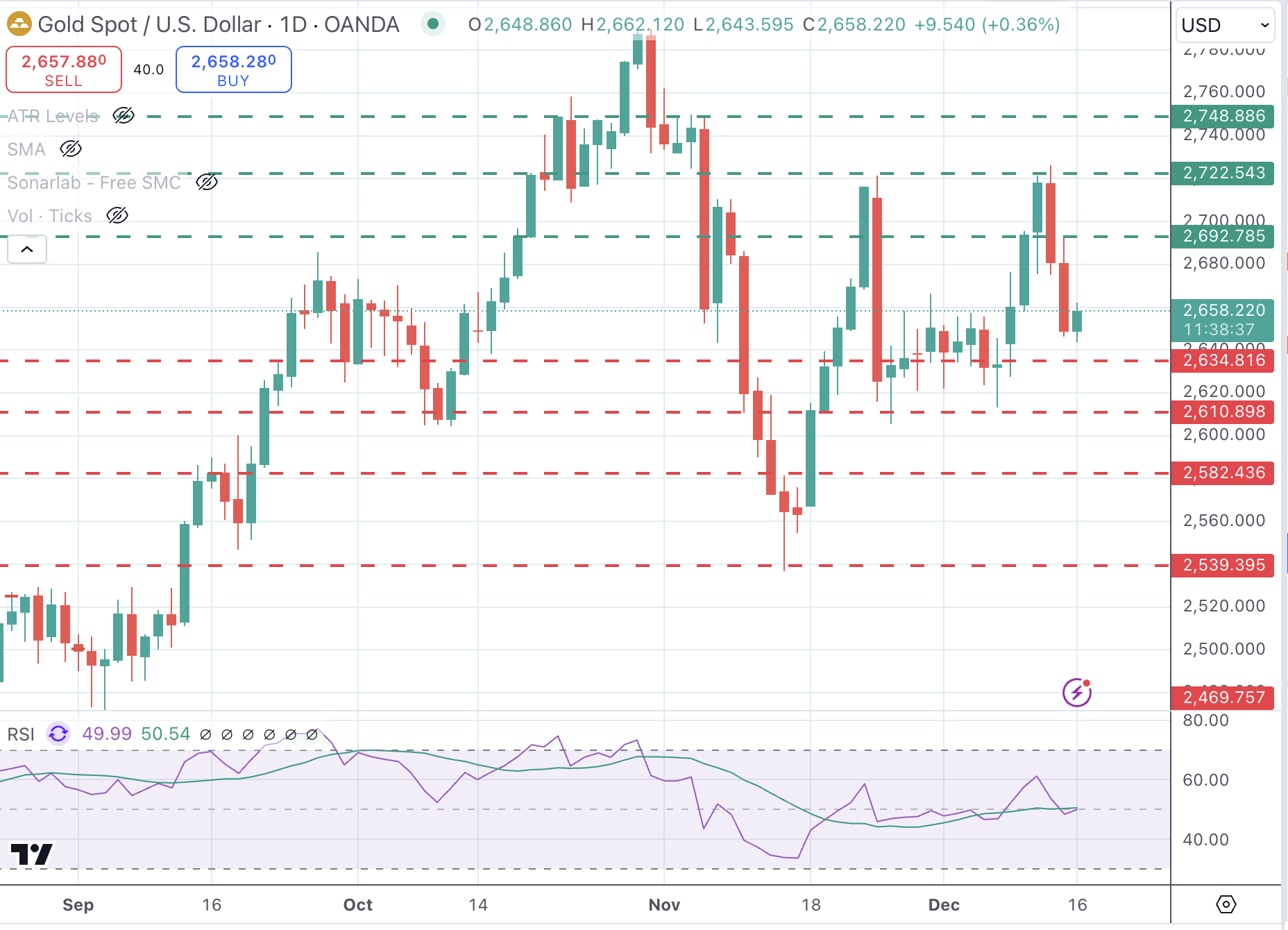 2,635美元的支撑区域正在支撑下行尝试,但该商品缺乏上行动力。之前的支撑位2,675美元可能在2,692美元(12月12日高点)之前充当阻力。