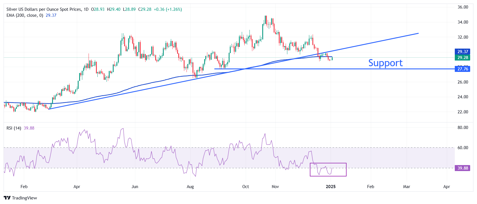 白银价格大幅反弹至 200 日指数移动均缐(EMA)附近,交投于 29.40 美元附近。然而,白银金属的前景仍然看跌者,直到其保持在向上倾斜趋势缐下方,该趋势缐在日缐时间框架上是从 2 月 29 日低点 22.30 美元绘製的。